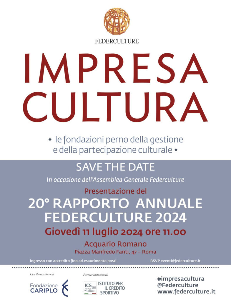 Il Rapporto Annuale Federculture IMPRESA CULTURA 2024 sarà presentato in anteprima nazionale al pubblico e alla stampa a Roma l’11 luglio 2024 alle ore 11.00 presso l’Acquario Romano. Frutto di […]