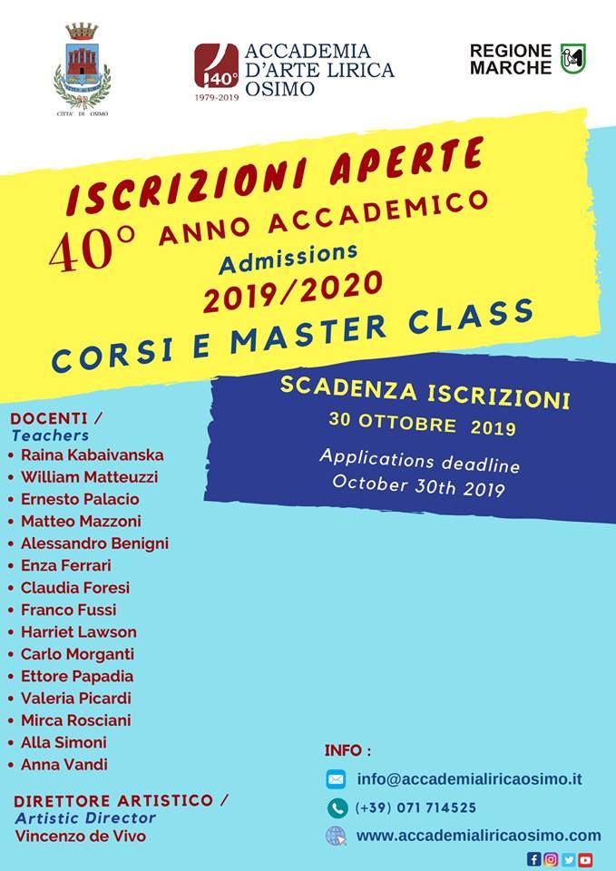 L’Accademia d’Arte Lirica di Osimo, ha dato il via alle iscrizioni per il quarantesimo anno accademico, anno 2019-2020.