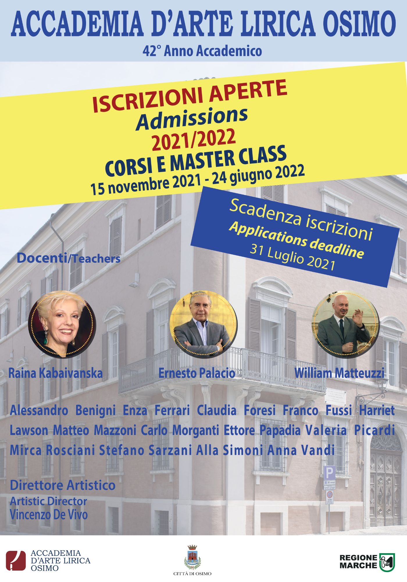 Sono aperte le iscrizioni all’Accademia d’Arte Lirica di Osimo per l’anno accademico 2021-2022.