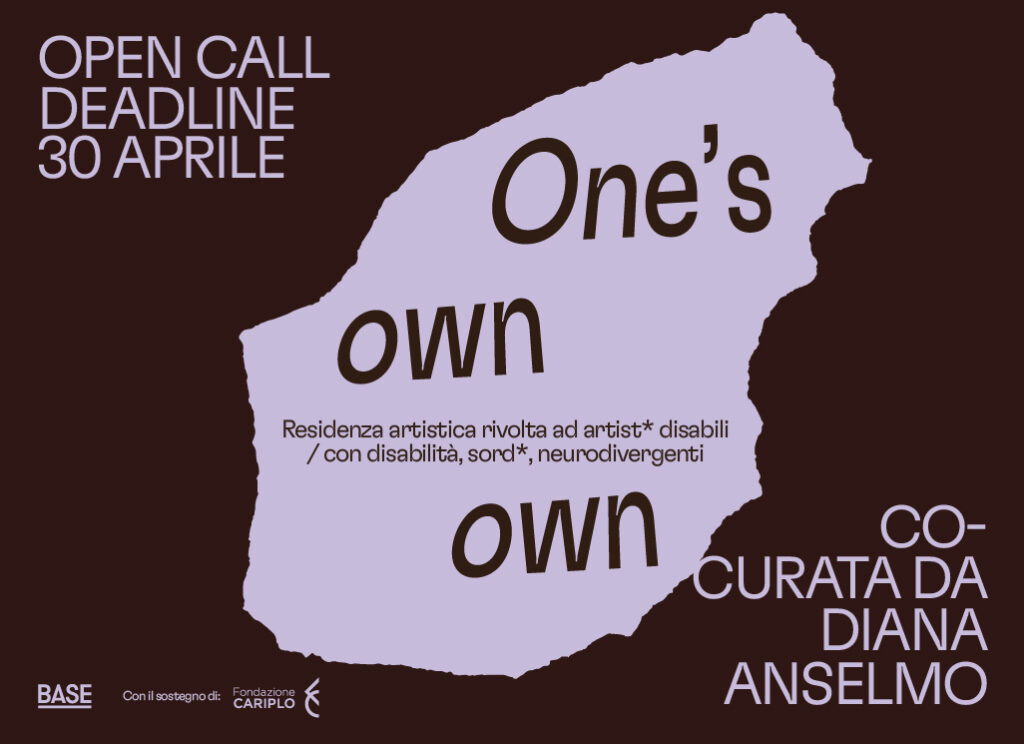 ONE’S OWN OWN è una call per una residenza artistica rivolta ad artist* disabili / con disabilità, sord*, neurodivergenti, co––curata con Diana Anselmo. ONE’S OWN OWN mira ad interrogare ed […]