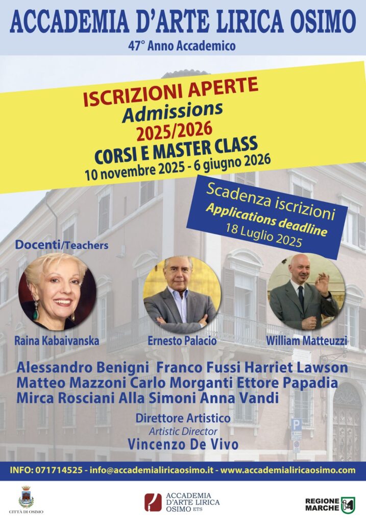 47ª Accademia d’Arte Lirica di Osimo – Iscrizioni aperte per l’anno 2025–2026 | Corsi e masterclass | Scadenza: 18 luglio 2025