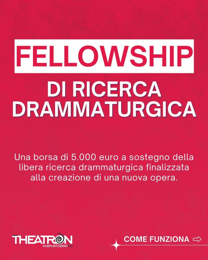 Theatron 2.0, nell’ambito di Omissis – Osservatorio drammaturgico, promuove una fellowship del valore di 5.000 euro a sostegno della libera ricerca drammaturgica finalizzata alla creazione di una nuova opera.