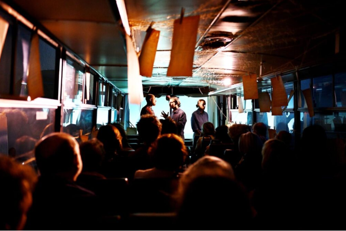 Lo spettacolo si terrà a Grottammare, Monteprandone e Appignano del Tronto, lungo un filo narrativo comunitario che dal mare risale verso la collina, attraverso un viaggio poetico su una vecchia corriera di paese che percorre luoghi e storie intimamente connessi tra loro eppure differenti.