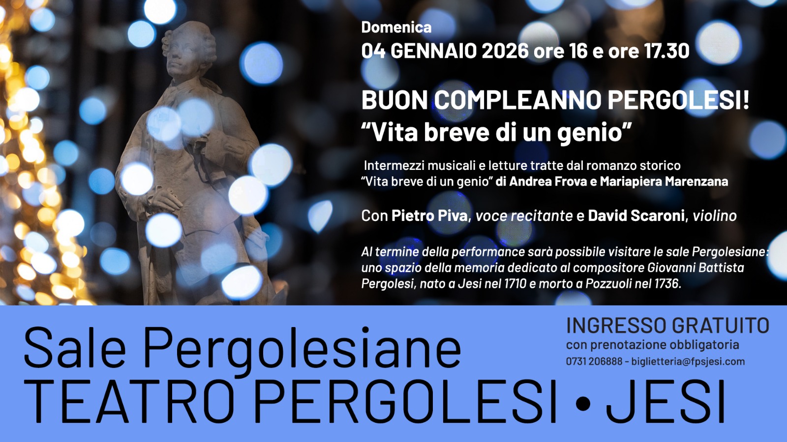 La performance propone intermezzi musicali e letture tratte dal romanzo storico Vita breve di un genio di Andrea Frova e Mariapiera Marenzana (Theta Edizioni, 2021), offrendo al pubblico un intenso viaggio nella Jesi dei primi anni del Settecento.