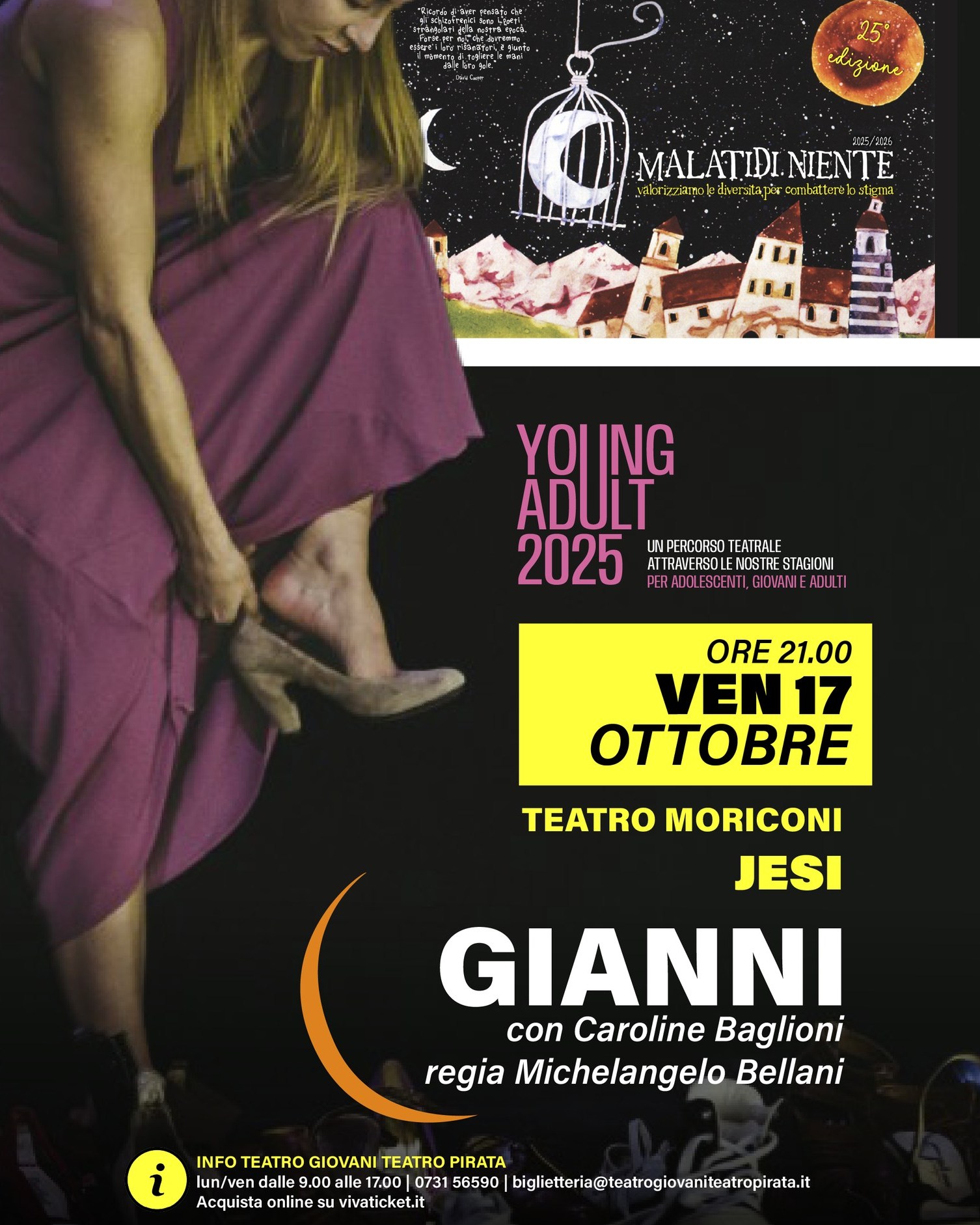 Info e prenotazioni: 0731 56590 biglietteria@teatrogiovaniteatropirata.it