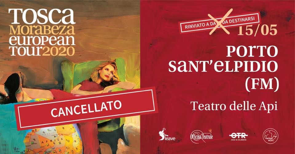 Visto il protrarsi dell’emergenza sanitaria, il concerto “Tosca – Morabeza” – inizialmente previsto il 15 Maggio 2020 e poi rinviato a data da destinarsi – è stato definitivamente annullato. Per la richiesta di rimborso dei biglietti: https://bit.ly/3oQV8xX