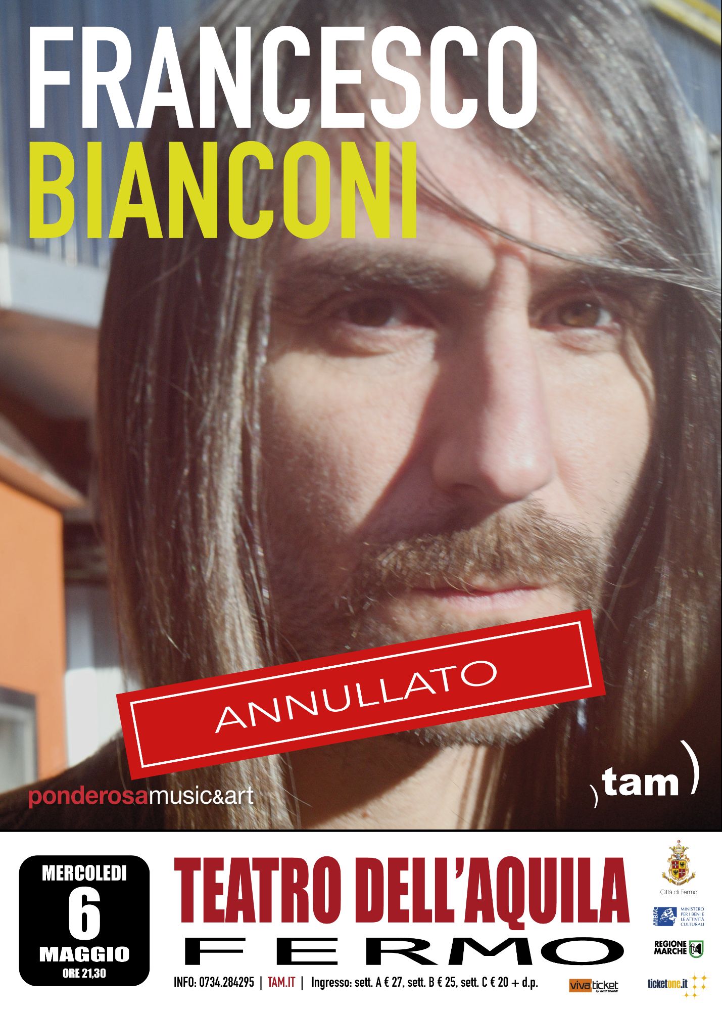 Si comunica che a causa del protrarsi dell’emergenza sanitaria, il concerto di Francesco Bianconi – inizialmente programmato il 6 Maggio 2020 presso il Teatro dell’Aquila di Fermo e successivamente rinviato a data da destinarsi – è stato definitivamente ANNULLATO.
