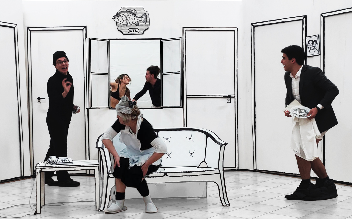 Realtà e finzione si fondono, spingendo lo spettatore a non sapere se quello che accade sulla scena sia reale o meno, grazie all’interpretazione degli attori, che passa dal macchiettistico e melodrammatico al naturalistico e colloquiale e alle scenografie, sfacciatamente finte, quasi fumettistiche e che, man mano che lo spettacolo prosegue, vengono “invase” dagli oggetti reali degli attori, fondendosi alla fine in un grande caos.