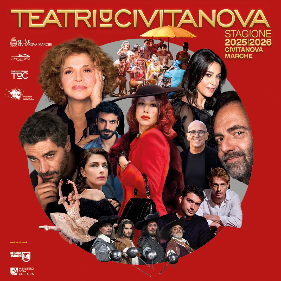 7 spettacoli in abbonamento e 2 fuori abbonamenti tracciano da novembre 2025 a maggio 2026 al Teatro Rossini il viaggio nello spettacolo dal vivo della stagione promossa dal Comune di Civitanova Marche, dall’Azienda Teatri di Civitanova e dall’AMAT con il contributo di Regione Marche and MiC.