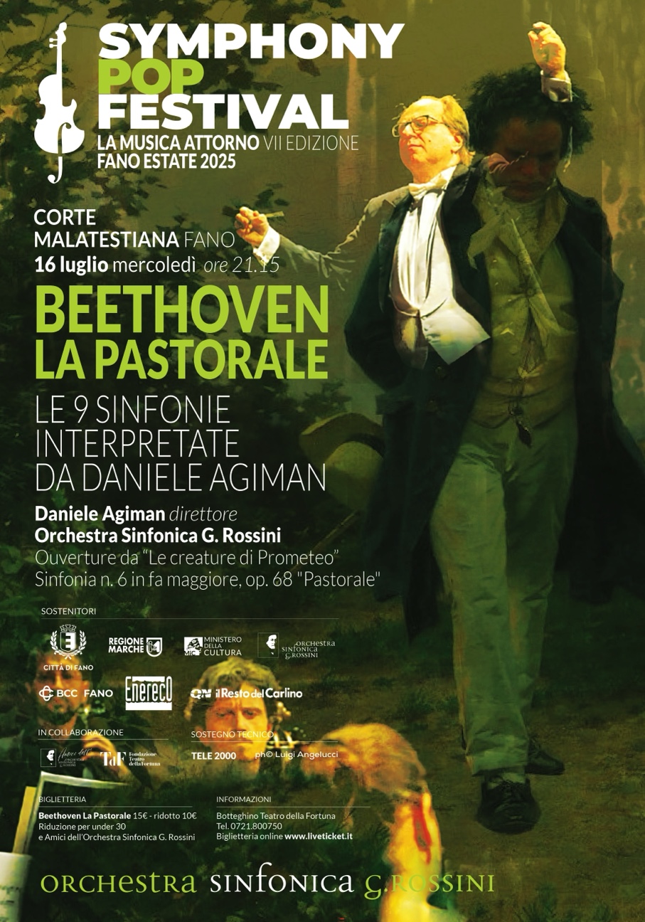 Il Symphony Pop Festival, promosso dall’Orchestra Sinfonica G. Rossini assieme al Comune di Fano, con il patrocinio della Regione Marche e del Ministero della Cultura e il sostegno degli sponsor BCC Banca di Credito Cooperativo ed Enereco, prosegue con un concerto del “Ciclo Beethoven”, ideato dal direttore musicale della Sinfonica Rossini, Daniele Agiman.