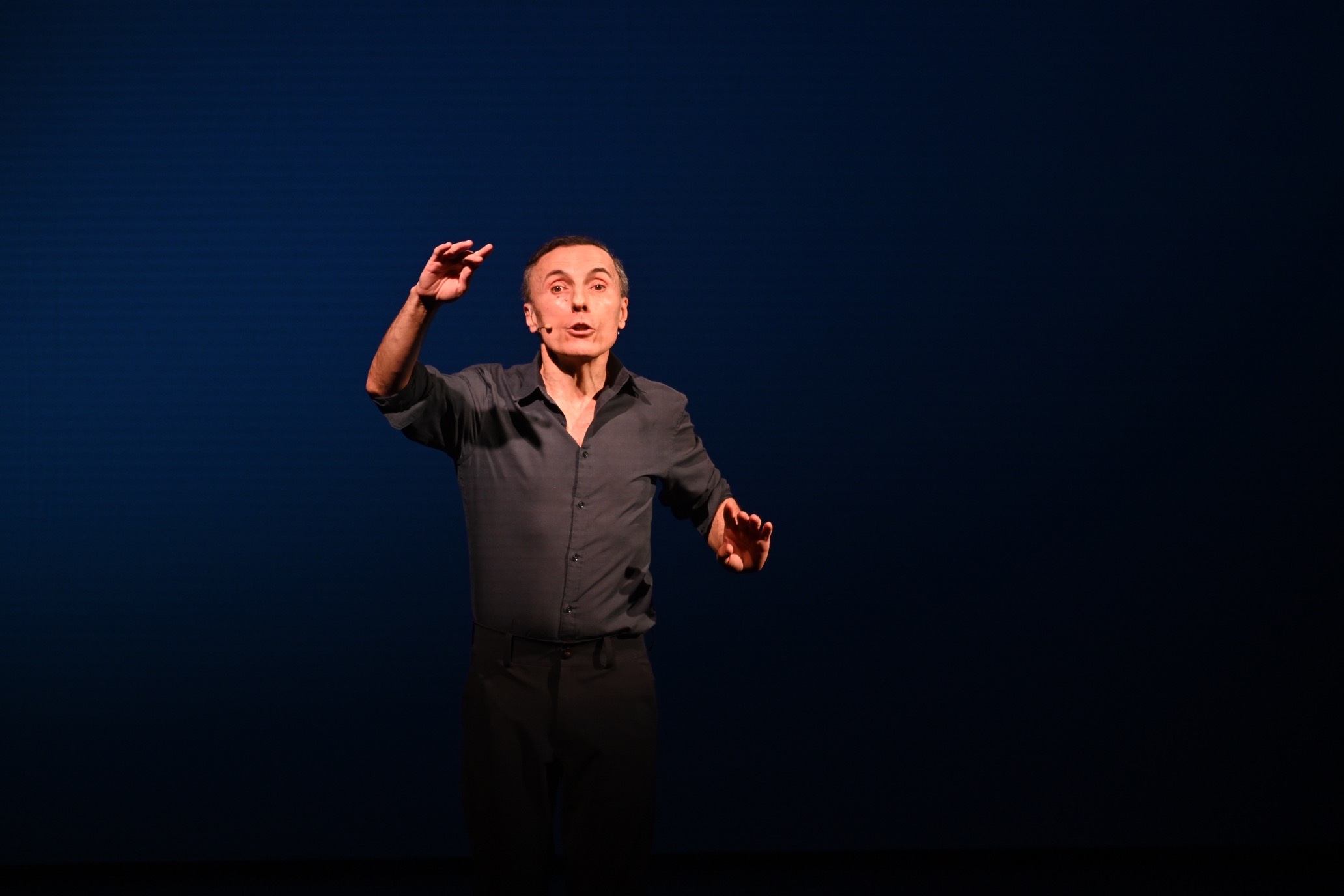 politica al progresso e l’inerzia che lo frena, Valerio Aprea porta in scena una serie di monologhi scritti per lui da Marco Dambrosio, in arte Makkox in un assolo iperbolico attorno al concetto di cambiamento, necessario ad affrontare il buio che ci minaccia laddove comicità e assurdo divengono strumenti affilati per affrontare e provare a scongiurare il grande spauracchio dell’apocalisse.