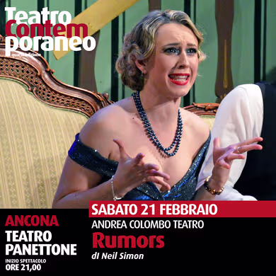 Una festa elegante, un colpo di pistola e il caos prende il sopravvento: “Rumors” di Neil Simon è una commedia brillante dove nulla è come sembra. Quattro coppie dell’alta società si ritrovano coinvolte in una serata ricca di bugie, equivoci e situazioni esilaranti, cercando disperatamente di salvare le apparenze… senza riuscirci. Ritmo incalzante, dialoghi taglienti e comicità travolgente vi aspettano a teatro. Non perdete l’occasione!