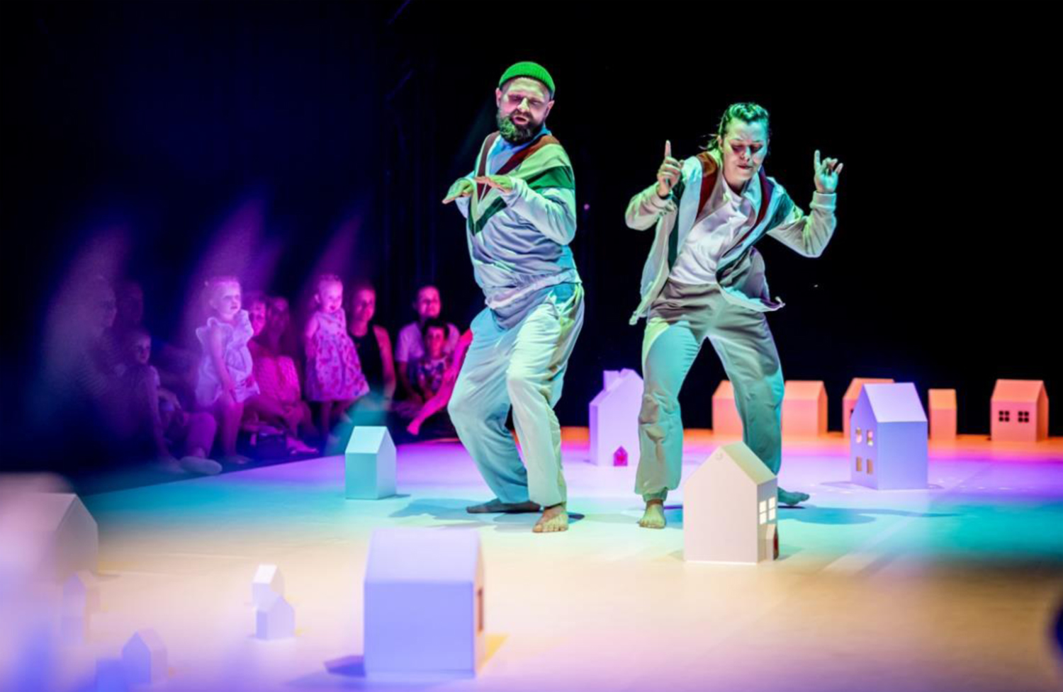 Spettacolo interattivo per bambine e bambini dai 2 ai 5 anni e per gli adulti a loro vicini. Uno spettacolo che unisce danza, movimento e oggetti per esplorare il tema della comunità, della cooperazione e della ricerca dell’essenza dello stare insieme. Guarda, questa è la nostra casa. Viviamo qui. È il nostro rifugio. Ma osserva meglio intorno a te: riesci a vedere anche le altre case? Sono collegate tra loro? Riesci a scorgere il legame che le unisce? Invitiamo le famiglie a intraprendere con noi un viaggio nel nostro quartiere. Questa è la nostra comunità. È qui che viviamo tutti insieme. Esploriamo insieme questo spazio condiviso: come possiamo prenderci cura l’uno dell’altro? Come possiamo convivere, anche nella diversità? Siamo tutti connessi: per questo vogliamo essere gentili e costruire insieme la nostra comunità. Apri il cuore, apri le porte della tua casa e unisciti a noi in questo momento speciale. Lo spettacolo nasce dal desiderio di dare voce ai più piccoli e alle relazioni che costruiscono con chi li circonda. La loro gentilezza e apertura ci fanno credere che una nuova società, fondata sull’empatia, sia possibile. Due interpreti delicati invitano il giovane pubblico a partecipare attivamente, costruendo insieme una piccola comunità e condividendo la propria creatività. Lo spettacolo è stato realizzato nell’ambito del progetto europeo “Mapping. A Map on the Aesthetics of Performing Arts for Early Years”.