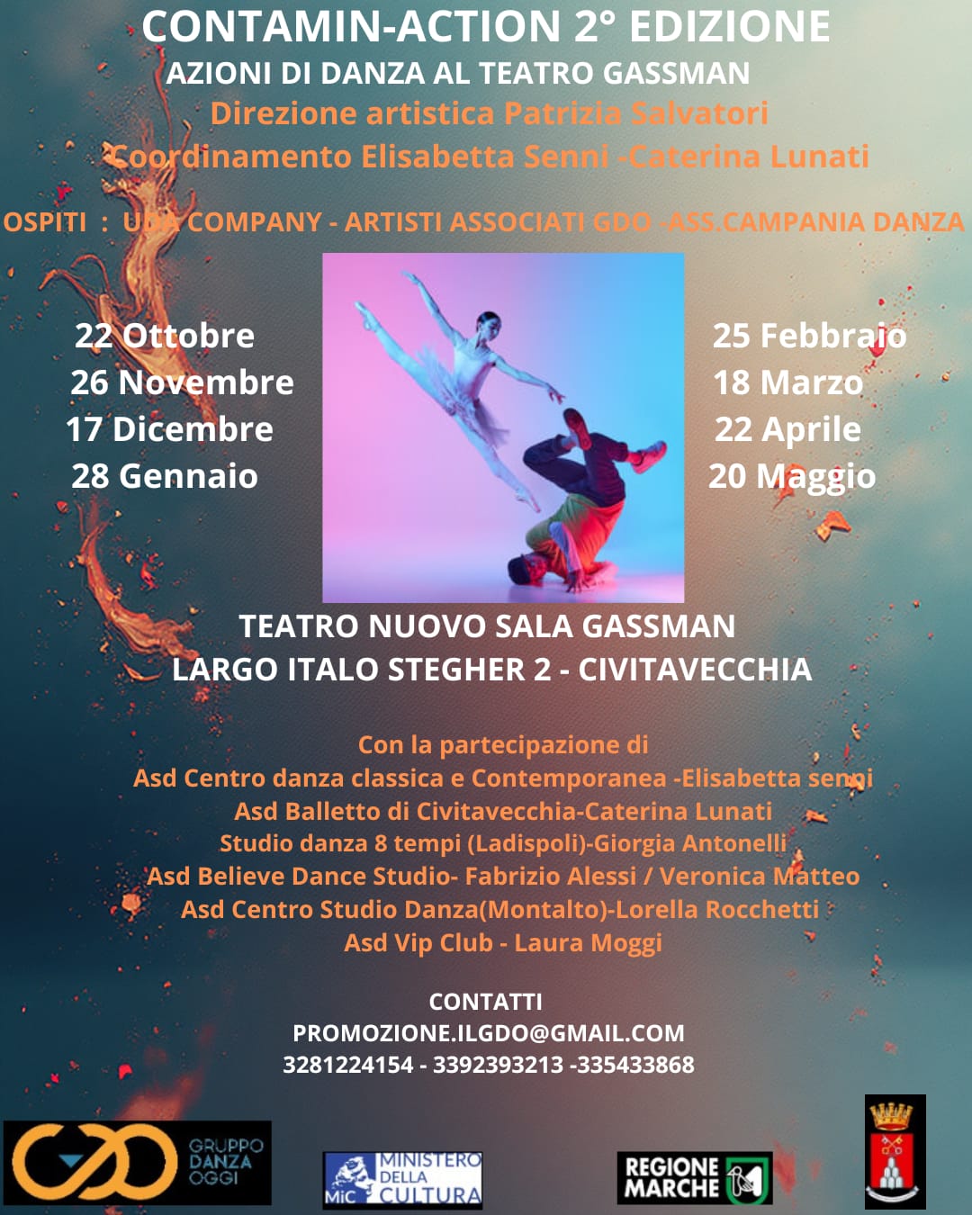 Civitavecchia, 22 ottobre 2025 – Dopo il successo della prima edizione, torna Contamin-Action – Azioni di Danza al Teatro Gassman, un progetto dedicato al linguaggio universale della danza, promosso dal Gruppo Danza Oggi con la direzione artistica di Patrizia Salvatori e il coordinamento di Elisabetta Senni e Caterina Lunati.