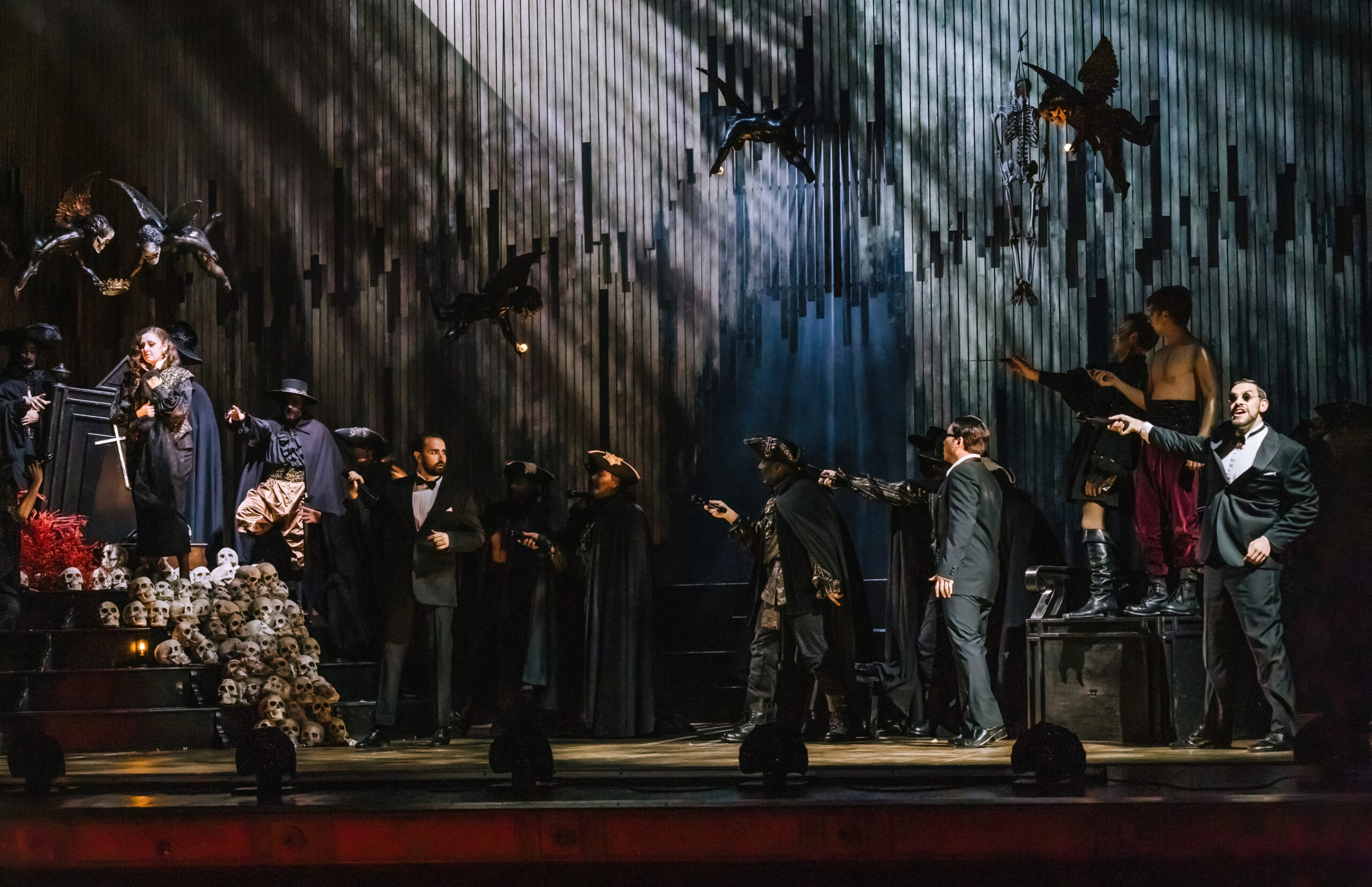 «Lo scoppio di un palloncino alla fine di una festa – scrive il regista Daniele Menghini nelle note di regia – Tanto sembra durare una vita. Non c’è tempo. Bisogna vivere, godere, ardere. E allora: “Ogni cura si doni al diletto”. È con questo manifesto quasi “eretico” che Riccardo esorta la sua pazza corte a seguirlo in piena notte nell’antro di una maga messa al bando. Parole che sembrano scolpire nella sala del trono il suo inno al piacere, con tutta la vitalità irriverente che gli appartiene. Parole in cui sentiamo l’eco di quel “Chi vuol esser lieto, sia” che aveva infiammato un’altra corte qualche secolo prima. Che sia la Firenze del Quattrocento, la Boston del Seicento, o la Svezia del Settecento, la vita resta una manciata di ore da sbranare voracemente, proprio perché “di domani non c’è certezza”. Ma cosa accade quando questa amara consapevolezza tocca il cuore di un Re? Non dobbiamo dimenticare che dietro le fantasie barocche di Riccardo, Conte di Warwick, si celano le ben più storiche smanie settecentesche di Gustavo III, Re di Svezia.Un sovrano stravagante, un despota illuminato. Poeta, drammaturgo, letterato, amante del Teatro, dell’Opera e delle Arti, assassinato forse perché troppo libero. È questo che può accadere quando un artista sale sul trono e indossa la corona. Riccardo è un uomo libero che vive costantemente sul precipizio dell’eccesso. Fuori dalla regola. Vive il potere come sovvertimento dell’ordine, l’amore come ricerca del limite, la vita come tensione verso la fine. Questo è Un ballo in maschera: un monumento al piacere sopra cui aleggia l’ombra della morte. “Dunque signori aspettovi”. Non ci resta che vivere e festeggiare. La festa come fuga. La vita come festa. Un eterno bal masqué rutilante, indiavolato, senza tregua. Si danzi, si viva a tempo di minuetto. La morte si avvicina. E allora “ognuno s’abbandoni e folleggi con me”. Musica».